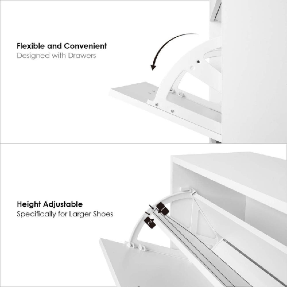 يمكن أن تستوعب الخزانة أكثر من 12 زوجًا من الأحذية بفضل تصميمها المكوّن من 3 أدوار وأربع أبواب.