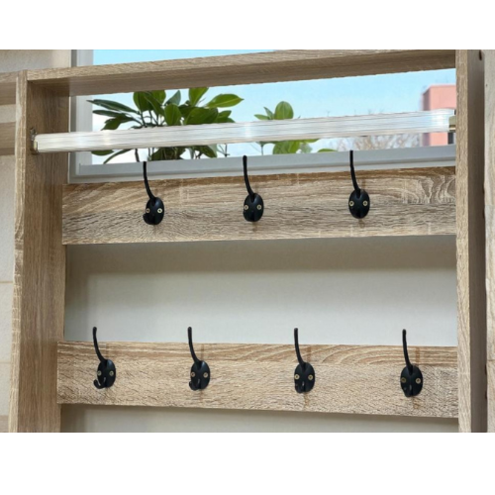 ✔️ تصميم عملي شامل: جزامة بثلاثة أبواب + علاقة علوية + 8 علاقات جانبية للشنط والمفاتيح.